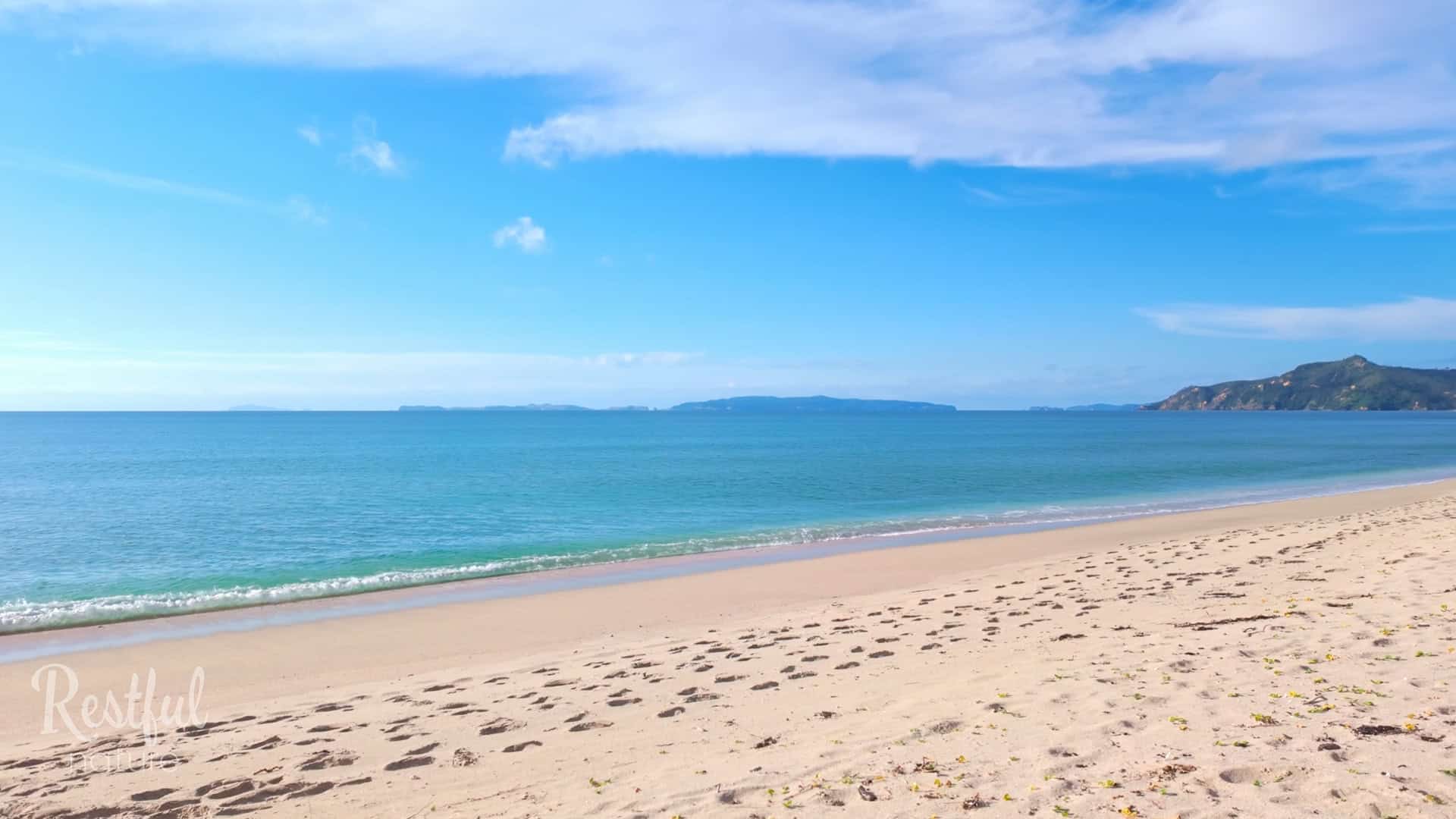 Escape to the serene beauty of Rings Beach, New Zealand, with this 10-hour single-view video of calm waves gently lapping against golden sand on a peaceful sunny day. Perfectly captured to bring you the ultimate relaxation experience, this natural ambience is ideal for unwinding, meditating, studying, or falling into a deep, restful sleep.